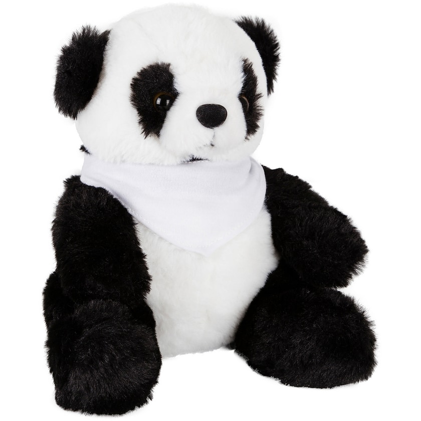 Goldiger und kuscheliger Panda. Der Druck erfolgt auf dem Schal des Pandas. Der Schal wird getrennt vom Stofftier geliefert. Ein kuscheliger Panda, der nur darauf wartet ein Freund zu werden!