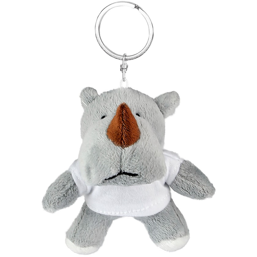 Kleines Nashorn mit Schlüsselring. Flopsy hat ein weißes T-Shirt, auf dem der Druck erfolgt. Das T-Shirt wird getrennt vom Stofftier geliefert. Ein cooles, kleines Stofftier, das garantiert überall Erfolg hat!