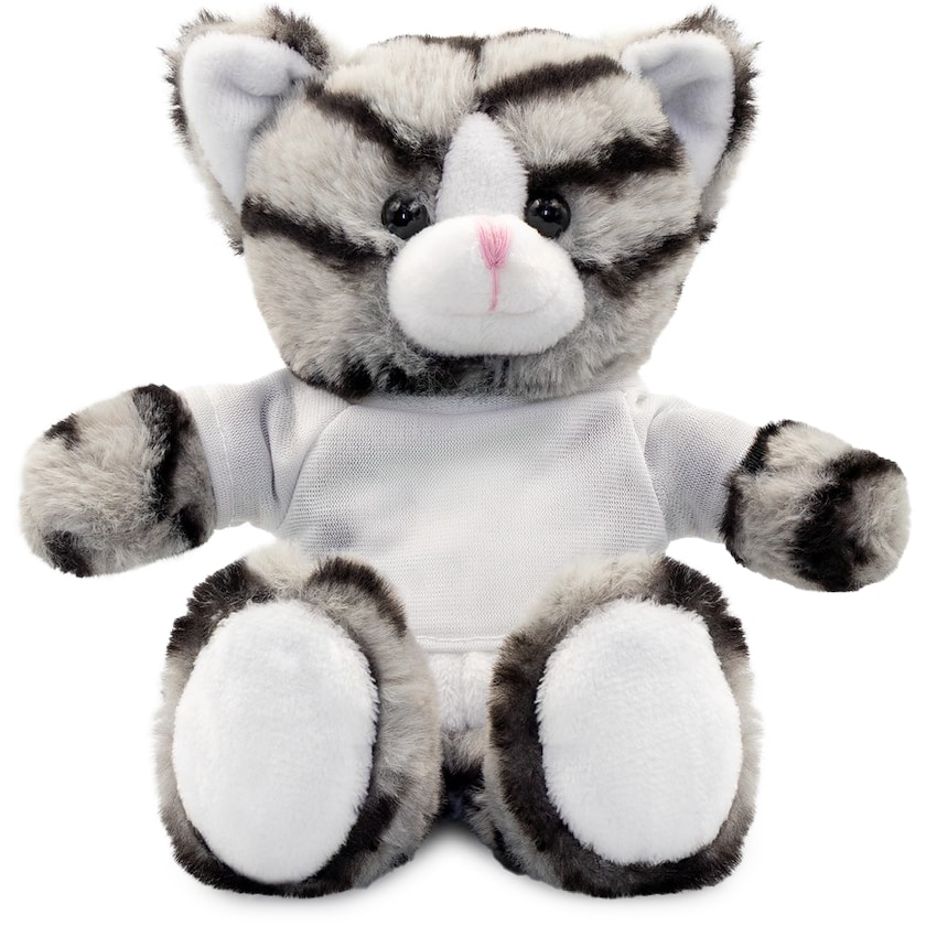 Süßes Kätzchen mit bedruckbarem T-Shirt. Das Plüschtier ist 16 cm hoch. Das T-Shirt wird separat vom Plüschtier geliefert. Kaufen Sie Plüschkätzchen mit Logo!
