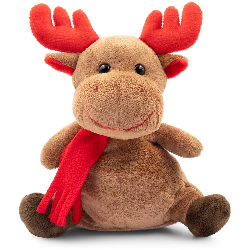 Süßes Rentier mit rotem Handtuch. Kügelchen im Inneren sorgen dafür, dass das Rentier leichter aufrecht sitzen kann.