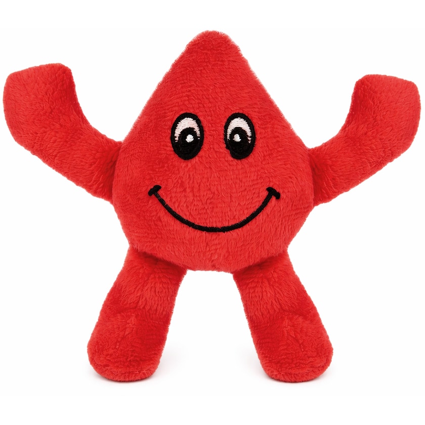 Stofftier in Form eines Blutstropfens. Augen und Mund sind gestickt. Der Aufdruck erfolgt auf der Rückseite.