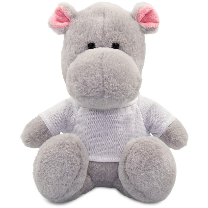 Kuscheltier in Form eines Nilpferdes. Kann mit Ihrem Logo bedruckt werden. Das T-Shirt wird separat vom Plüschtier geliefert.