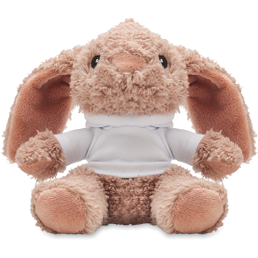 Kuscheliges Kaninchen mit Kapuze. Der Druck erfolgt auf dem Hemd des Kaninchens.