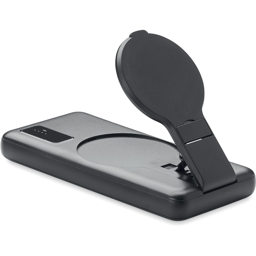 Powerbank mit Magnetständer und kabellosem Ladegerät. Kompatibel mit iPhone 12 und neuer. Enthält einen zusätzlichen magnetischen Metallring, um das Aufladen anderer nicht-magnetischer, kabellos aufladbarer Telefone zu unterstützen.