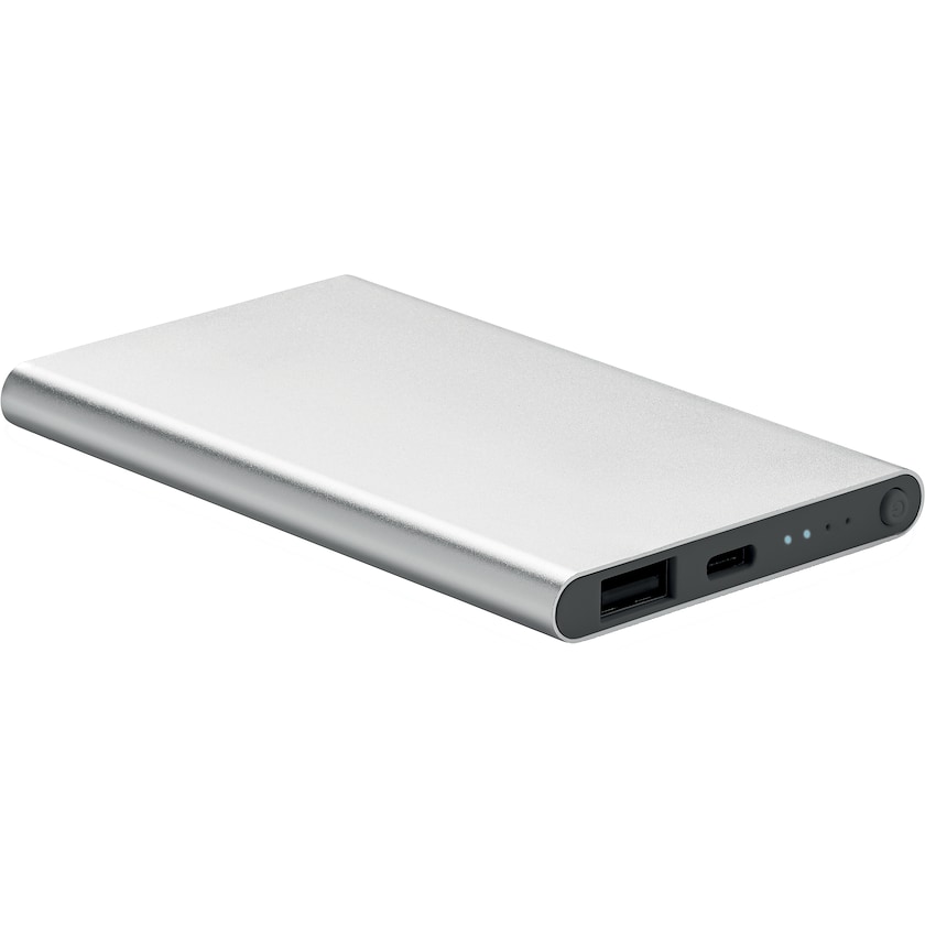 Dünne Powerbank aus Aluminium. Wird mit einem Mikro-USB-Kabel geliefert. Unterstützt die neuesten Schnellladetechnologien.