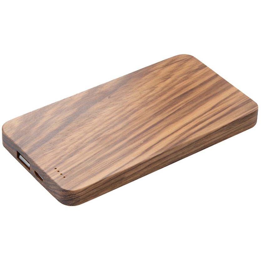 Eine Powerbank für alle, die ein natürliches Aussehen bevorzugen. Nolan ist aus echtem Holz, hat einen normalen USB-Anschluss und eine Ladeanzeige. Mikro-USB-Kabel und Anleitung werden mitgeliefert. Die Powerbank ist CE-zertifiziert und hat 1 Jahr Garantie. Input: 5 V/1,5 A, Output: 5 V/1,5 A. Das Logo wird mit Lasergravur aufgebracht.