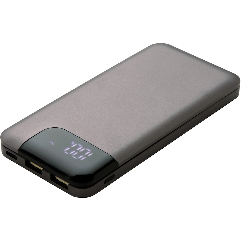 8.000 mAh Powerbank aus Aluminium des Qualitätsherstellers Swiss Peak. Veron hat eine digitale Anzeige, an der man den Ladestand ablesen kann. Die Powerbank hat einen USB- und C-Port. Sie läd doppelt so schnell, wie die meisten anderen Powerbanken. Input: 5V/2A; Micro USB-Port-in (zum Laden), Type C Input: 5V/2A, USB Output: 5V/2,1A, Type C Output: 5V/2,1A.