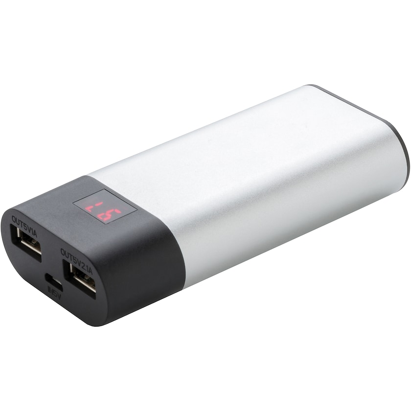 Leistungsstarke Powrbank mit LED-Ladungsanzeige. Powerbank mit zwei USB-Ausgängen zum gleichzeitigen Laden von zwei mobilen Geräten. Ausgang mit 5V/2A, Eingang 5V/1A. Lieferung in einer eleganten Geschenkpackung.