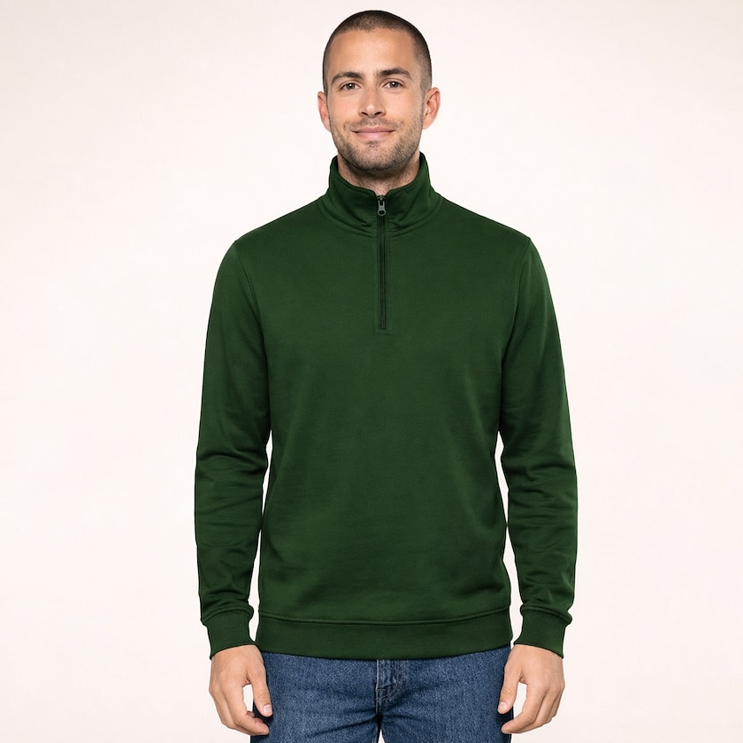 Trendiges Sweatshirt mit kurzem Reißverschluss am Hals. In vielen schönen Farben erhältlich. Einzelverpackt in Plastiktüten.