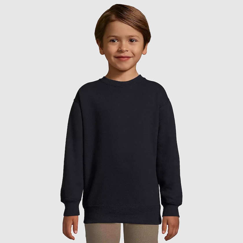 Sweatshirt für Kinder, das ab 5 Stück gekauft werden kann. Die Größen sind wie folgt: L: 4 Jahre (106-116 cm), XL: 6 Jahre (106-116 cm), XXL: 8 Jahre (118-128 cm), 3XL: 10 Jahre (130-140 cm), 4XL: 12 Jahre (142-152 cm). Ein herrliches Sweatshirt mit Druck für schelmische Kinder!