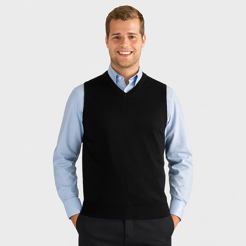 Elegant gestrickter Slipover von Russell. Der Slipover ist aus Easy Care Baumwollmischung, diese kombiniert die Leichtheit der Baumwolle mit der Weichheit von Akryl. Kann bei 40 gewaschen und im Trockner getrocknet werden. Wird in Plastikhülle verpackt geliefert.