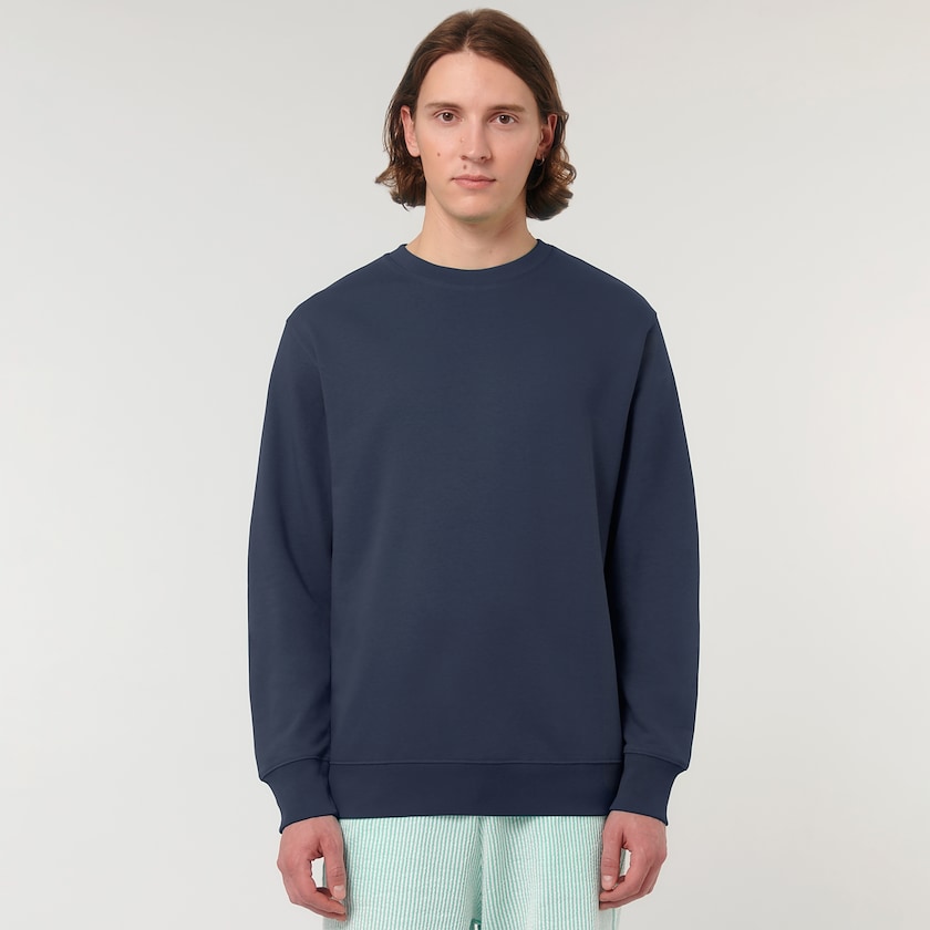 Unisex-Sweatshirt aus umweltfreundlichem Stoff. Der Stoff wiegt 300 g/m² und besteht zu 85 % aus Bio-Baumwolle und zu 15 % aus recyceltem Polyester.