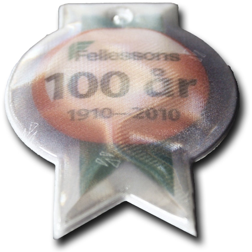 Erstklassig! Reflektor aus weichem Material. Der Reflektor wird mit Schnur und Sicherheitsnadel oder mit Metallkette geliefert. Das Reflektormaterial ist von 3M Scotchlite und entspricht EN13356:2001. Um den Reflektor in seinem Reflektiervermögen nicht zu beschädigen, erfolgt der Druck unter der Oberfläche.