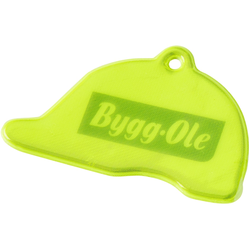 Weich-Reflektor in Form eines Schutzhelms. Perfekt für die Baubranche! Der Reflektor wird mit Schnur und Sicherheitsnadel oder mit Metallkette geliefert. Das Reflektormaterial ist von 3M Scotchlite und entspricht EN13356:2001. Um den Reflektor in seinem Reflektiervermögen nicht zu beeinträchtigen, erfolgt der Druck unter der Oberfläche.