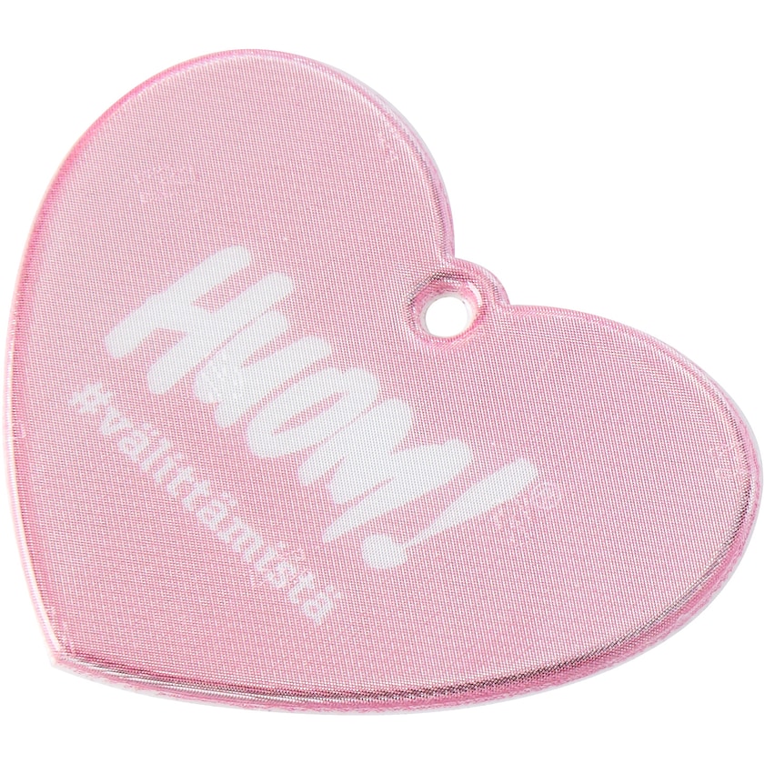 Reflektor in Herzform aus weichem Material. Schnur, Metallkette oder Sicherheitsnadel. Der Reflektor wird mit Schnur und Sicherheitsnadel oder mit Metallkette geliefert. Das Reflektormaterial entspricht EN13356:2001. Um den Reflektor nicht zu beschädigen, erfolgt der Druck unter der Oberfläche.