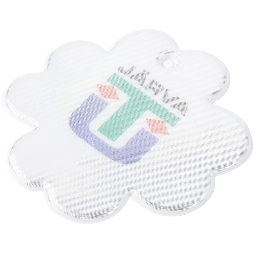 Viel Glück! Weich-Reflektor in Form eines Kleeblattes. Der Reflektor wird mit Schnur und Sicherheitsnadel oder mit Metallkette geliefert. Das Reflektormaterial ist von 3M Scotchlite und entspricht EN13356:2001. Um den Reflektor in seinem Reflektiervermögen nicht zu beeinträchtigen, erfolgt der Druck unter der Oberfläche.
