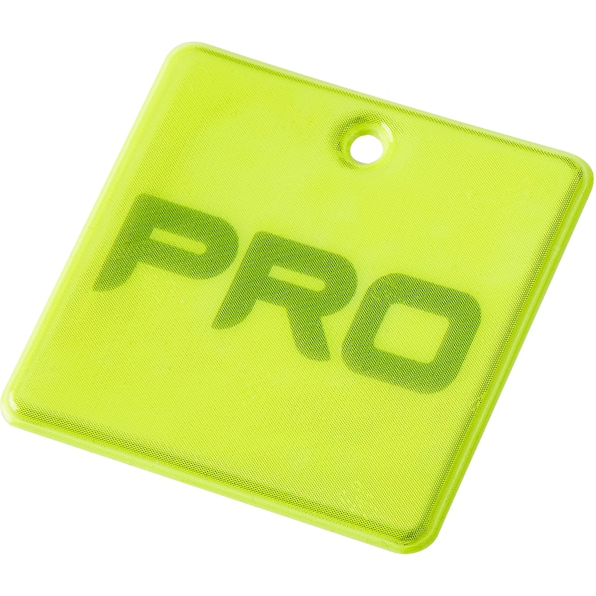 Quadratischer Weich-Reflektor aus Material von 3M Scotchlite. Wird mit Schnur und Sicherheitsnadel oder mit Metallkette geliefert. Das Reflektormaterial ist geprüft und entspricht EN13356:2001. Der Druck erfolgt unter der Oberfläche.