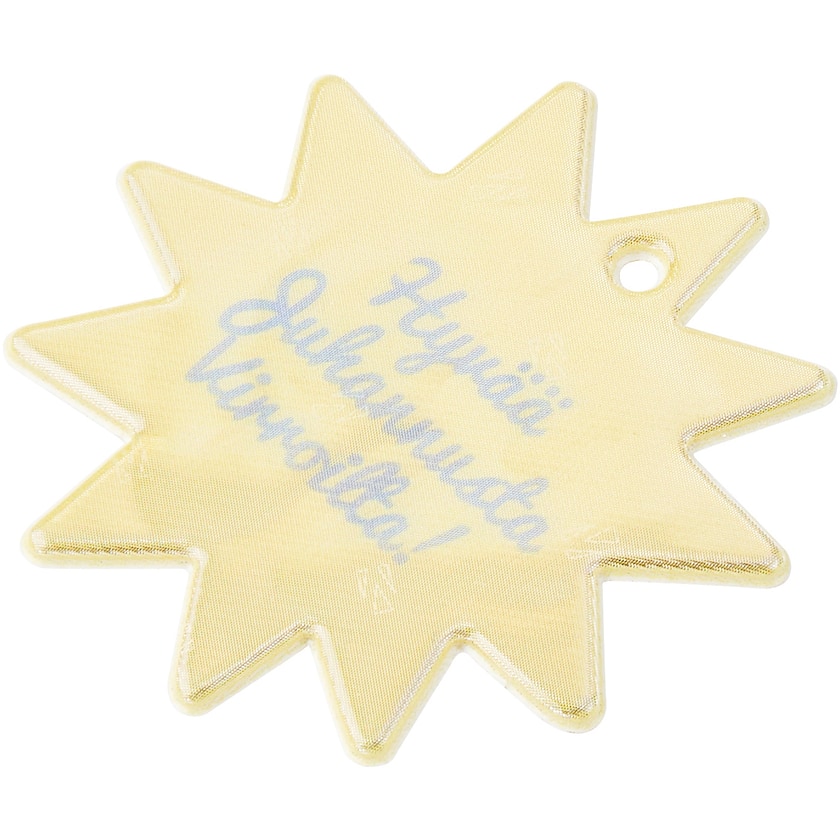 Es wird wärmer! Wunderschöner Reflektor in Form einer Sonne. Der Reflektor wird mit Schnur und Sicherheitsnadel oder mit Metallkette geliefert. Das Reflektormaterial entspricht EN13356:2001. Um den Reflektor nicht zu beschädigen, erfolgt der Druck unter der Oberfläche.