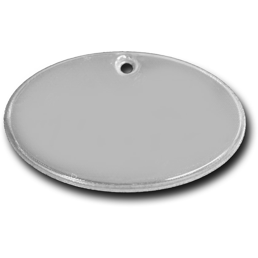 Ovaler Weich-Reflektor, das Material ist von 3M Scotchlite. Der Reflektor wird mit Schnur und Sicherheitsnadel oder mit Metallkette geliefert. Das Reflektormaterial ist geprüft und entspricht EN13356:2001. Um den Reflektor nicht zu beschädigen, erfolgt der Druck unter der Oberfläche.