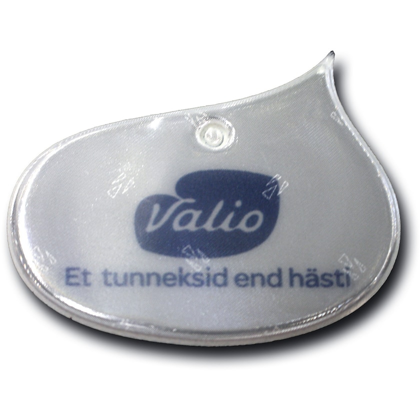 Lustiger Weich-Reflektor in Form einer Sprechblase. Der Reflektor wird mit Schnur und Sicherheitsnadel oder mit Metallkette geliefert. Das Reflektormaterial ist geprüft und entspricht EN13356:2001. Um den Reflektor nicht zu beeinträchtigen, erfolgt der Druck unter der Oberfläche.