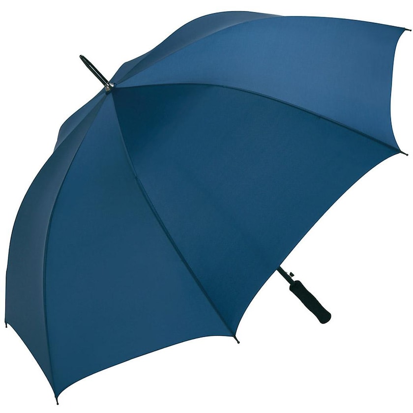 Sturmfester Golfschirm zu einem attraktiven Preis. Die Streben bestehen aus strapazierfähigem Fiberglas und die Schirmstange aus verzinktem Stahl. Der Griff ist angenehm gummiert.