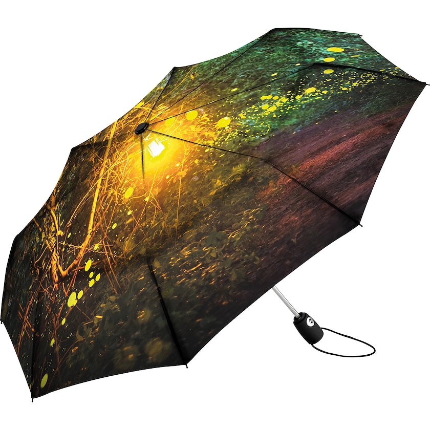 Hochwertiger Kompaktregenschirm mit Logo über den gesamten Stoffbezug. Der Regenschirm ist sturmsicher und lässt sich automatisch öffnen und schließen. Der Griff ist angenehm gummiert. Die gesamte Oberseite des Stoffes wird nach Ihren Wünschen bedruckt. Da die Schirme direkt in der Fabrik hergestellt werden, ist die Lieferzeit länger als normal.