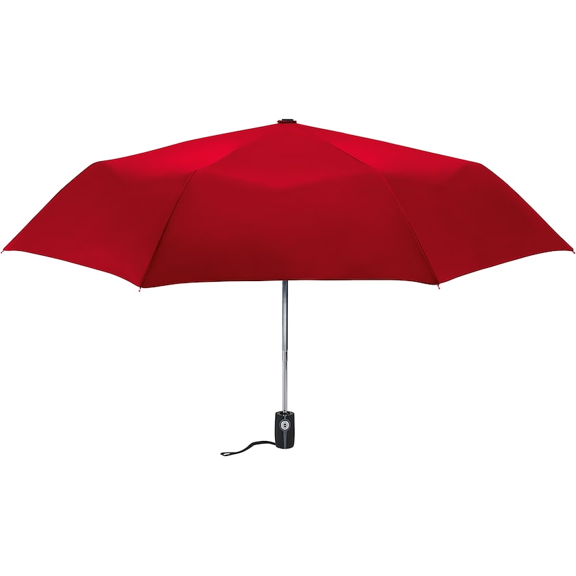 Sturmsicherer Kompaktregenschirm, der bereits ab 10 Stück bestellt werden kann. Der Regenschirm ist verstärkt, so dass er auch kräftigen Windböen standhält. Der Handgriff ist gummiert. Der Regenschirm hat drei Sektionen und lässt sich automatisch öffnen und schließen.
