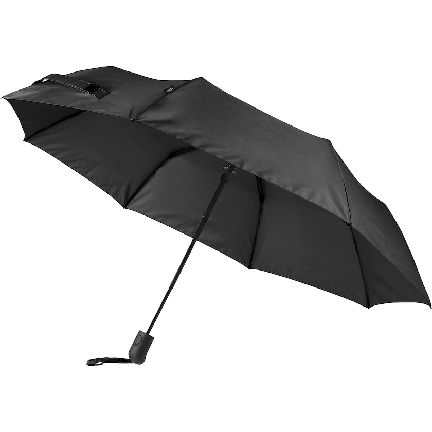 Umweltfreundlicher Kompaktschirm der Marke Vinga. Hergestellt aus rPET-Gewebe mit einem Schirmstock aus Metall und Glasfaser. Sturmsicher und automatisches Öffnen per Knopfdruck. Der Griff ist gummiert.