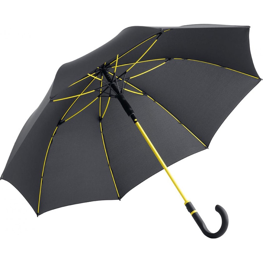 Sturmfester Regenschirm mit Streben und Schirmstange in Kontrastfarbe. Barrington hat eine sturmsichere Konstruktion mit Fiberglasrippen und einer stabilen Schirmstange aus Stahl. Das Öffnen erfolgt automatisch. Der Stoff besteht aus recyceltem Polyester, das nach STANDARD 100 by OEKO-TEX zertifiziert ist.