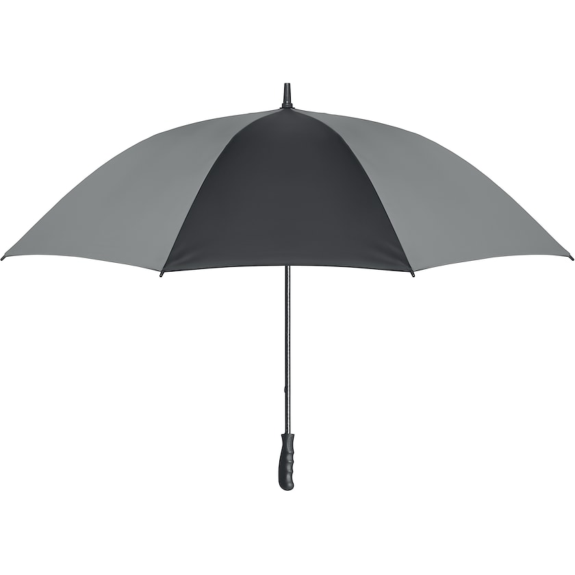 Regenschirm mit vier reflektierenden Feldern. Rahmen, Rippen und Stock sind aus Fiberglas. Der Griff hat eine Gummibeschichtung.