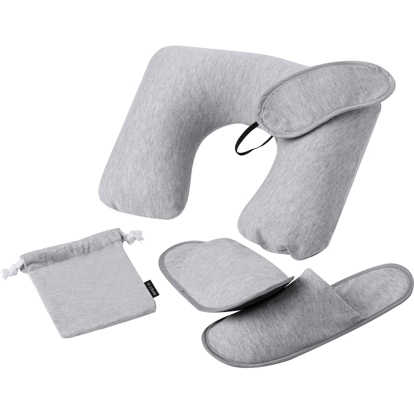 Das Reiseset mit allem für eine komfortable Reise. Die Hausschuhe haben eine Einheitsgröße und passen für Füße der Größen 36 bis 43.