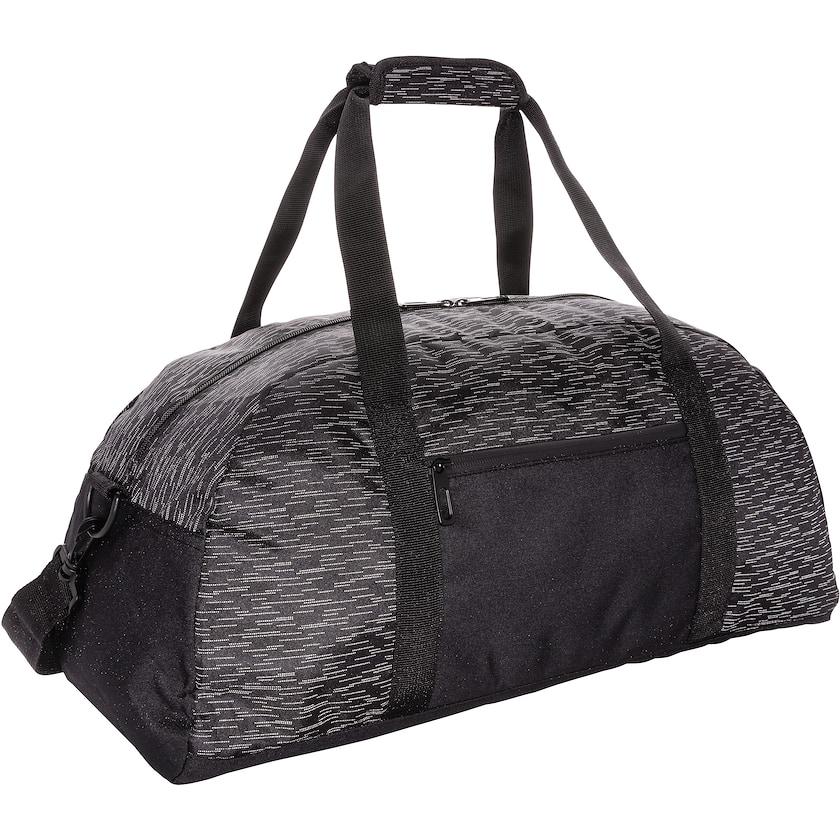 Wochenendtasche mit reflektierendem Druck über die ganze Tasche. Die Tasche besteht aus rPET, d.h. aus recycelten PET-Flaschen. Vorne besitzt sie ein großes Aufbewahrungsfach. Im Inneren gibt es zwei Netztaschen.