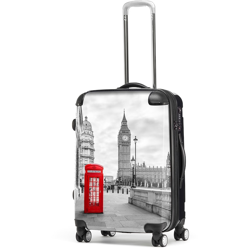 Hochwertige Reisetaschen mit ihrem Aufdruck auf der ganzen Vorderseite. Shanghai ist aus Polykarbonat und ist sowohl leicht als auch stoßfest. Die Tasche hat 8 Räder und ein TSA-Schloss. Innen befinden sich Fächer, Spanngurte und ein Wäschebeutel. Das Tasche kam 25 % vergrößert werden. Der Druck erfolgt auf Fotopapier, dass unter einer schützenden Schicht Epoxy platziert wird. Die Tasche hat zwei Jahre Garantie.