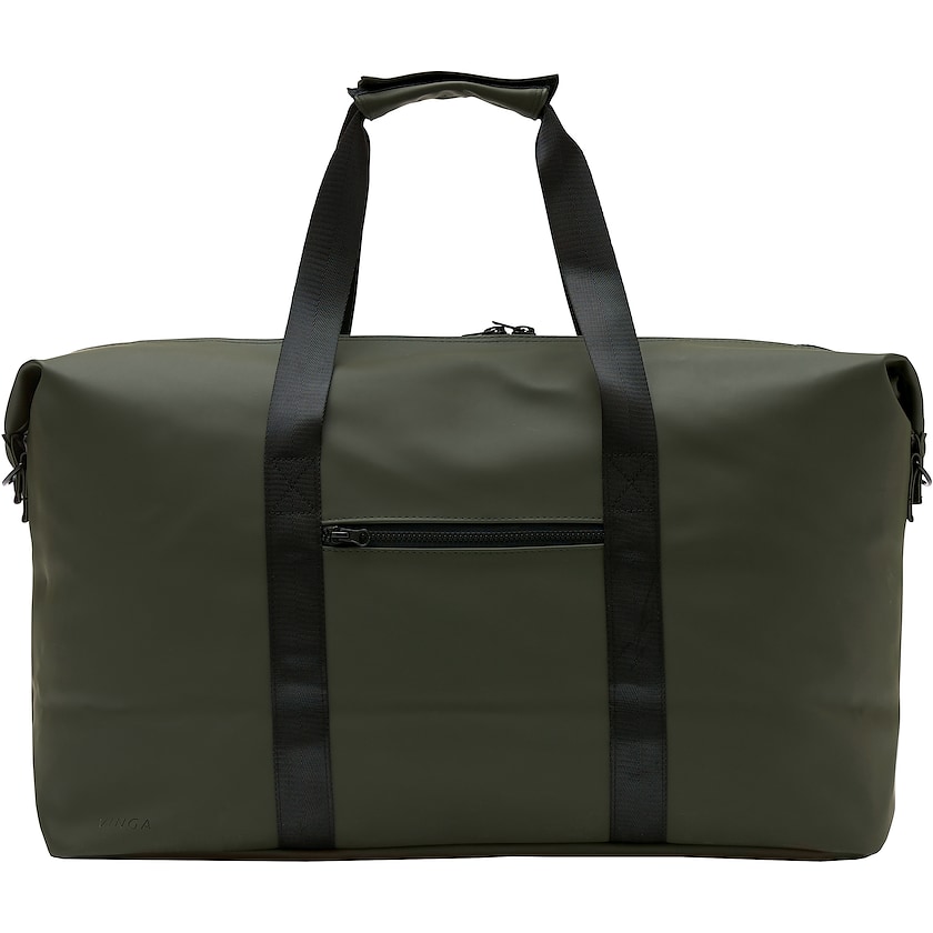 Geräumige Wochenendtasche von Vinga. Die Tasche hat ein minimalistisches Design im wasserabweisenden Stoff. Auf der einen Seite befindet sich eine Tasche mit Druckknopf und auf der anderen eine Tasche mit Reißverschluss. Der Schultergurt ist regulierbar.