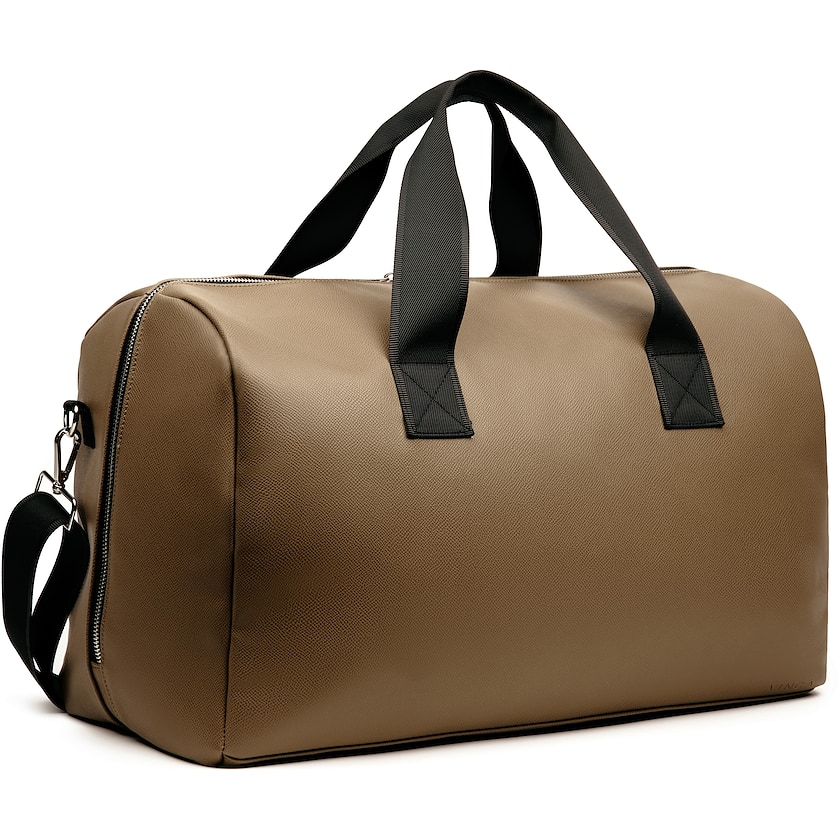 Wochenendtasche mit raffiniertem Design. Die Außenseite besteht aus recyceltem Kunstleder und die Innenseite aus recyceltem Polyester. Der lange Reißverschluss macht den Zugriff auf den Inhalt der Tasche leicht. Im Inneren befindet sich ein kleineres Fach mit Reißverschluss. Eine luxuriöse Wochenendtasche aus nachhaltigen Materialien.
