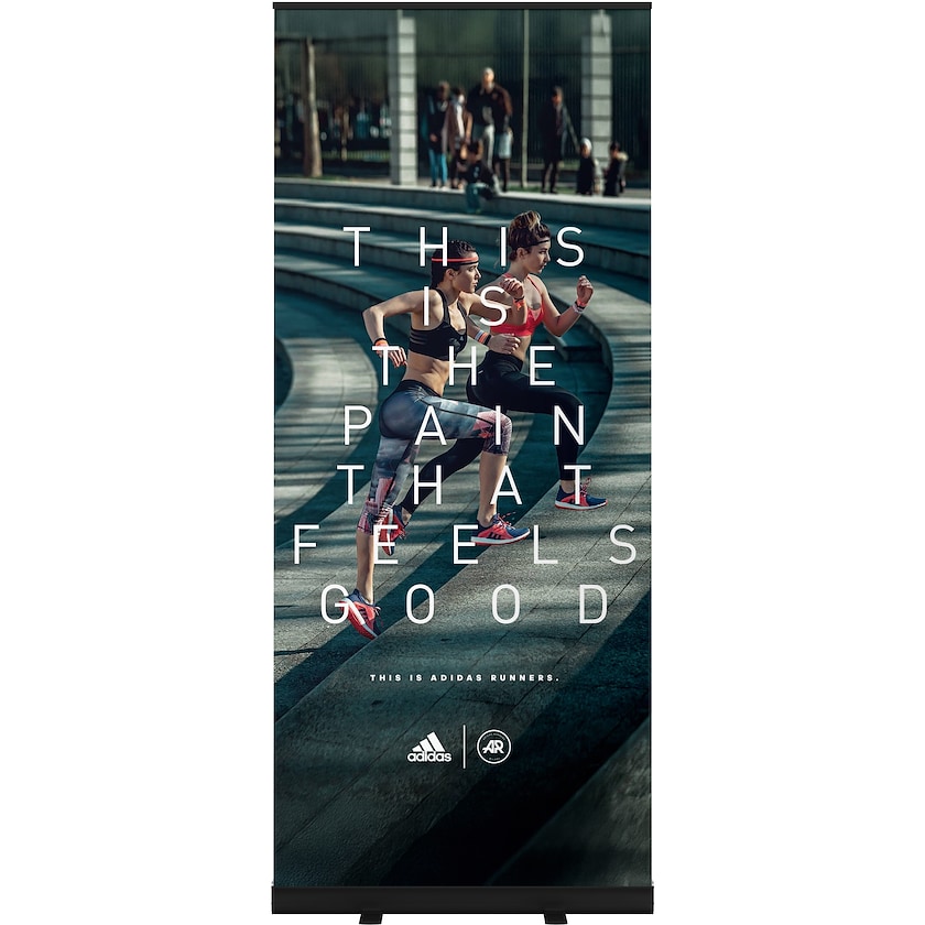 Unser meistverkauftes Rollup in Schwarz. Die gesamte Struktur besteht aus eloxiertem Aluminium und ist schwarz pulverbeschichtet. Der Stoff ist Blockout PET 330 g/m², ein erstklassiger Stoff mit einer weichen, matten Oberfläche, die Licht abschirmt und eine perfekte Farbwiedergabe bietet. Der Druck erfolgt digital mit fortschrittlicher UV-LED-Technologie und ökologischen Farben aus europäischer Produktion. Der Stoff misst 200 x 85 cm. Tasche inklusive. 1 Jahr Garantie. Dieses Rollup ist identisch mit unserem Standard-Rollup, jedoch schwarz.