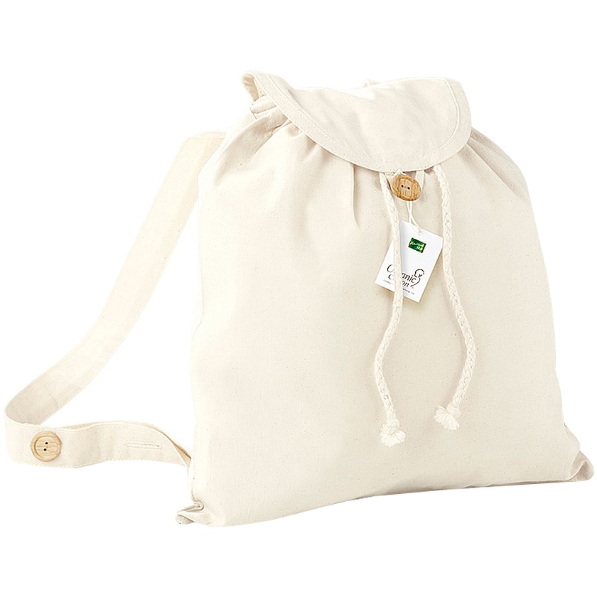 Natürlich schön! Rucksack aus 100% Bio-Baumwolle und mit Holzknöpfen. Schulterriemen sind justierbar.