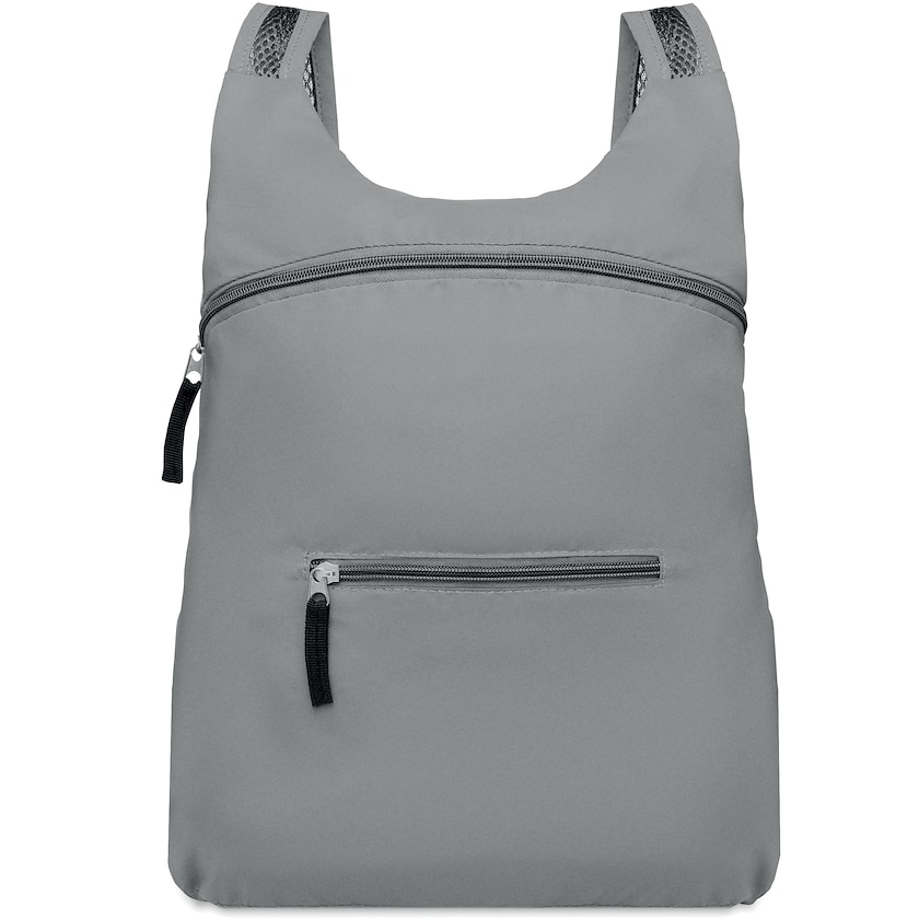 Faltbarer Sportrucksack mit stark reflektierendem Stoff. Die Schultergurte sind verstellbar. Es ist nur ein 1-farbiger Druck möglich.