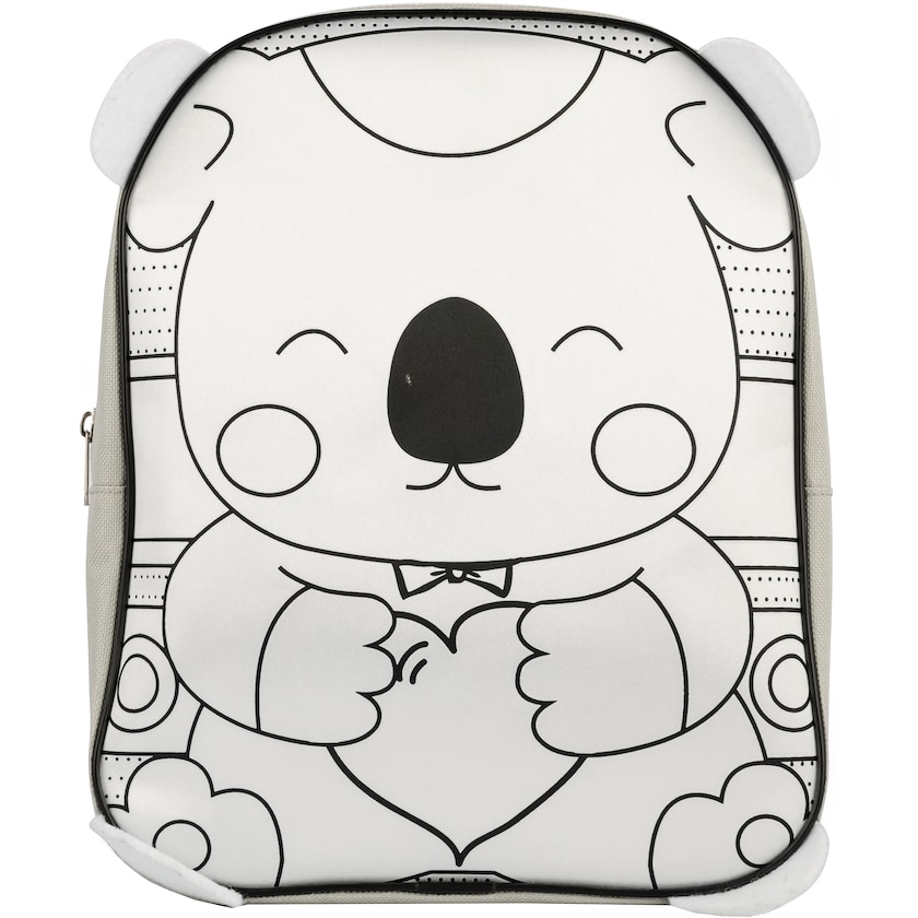 Kinderrucksack mit einem Koala an der Vorderseite. Wird mit 6 Stk. Farbstiften geliefert, um den Koala ausmalen zu können. Der Rucksack ist kleiner und somit für Kinder geeignet. Die Träger sind einstellbar und es gibt auch einen Tragegriff.