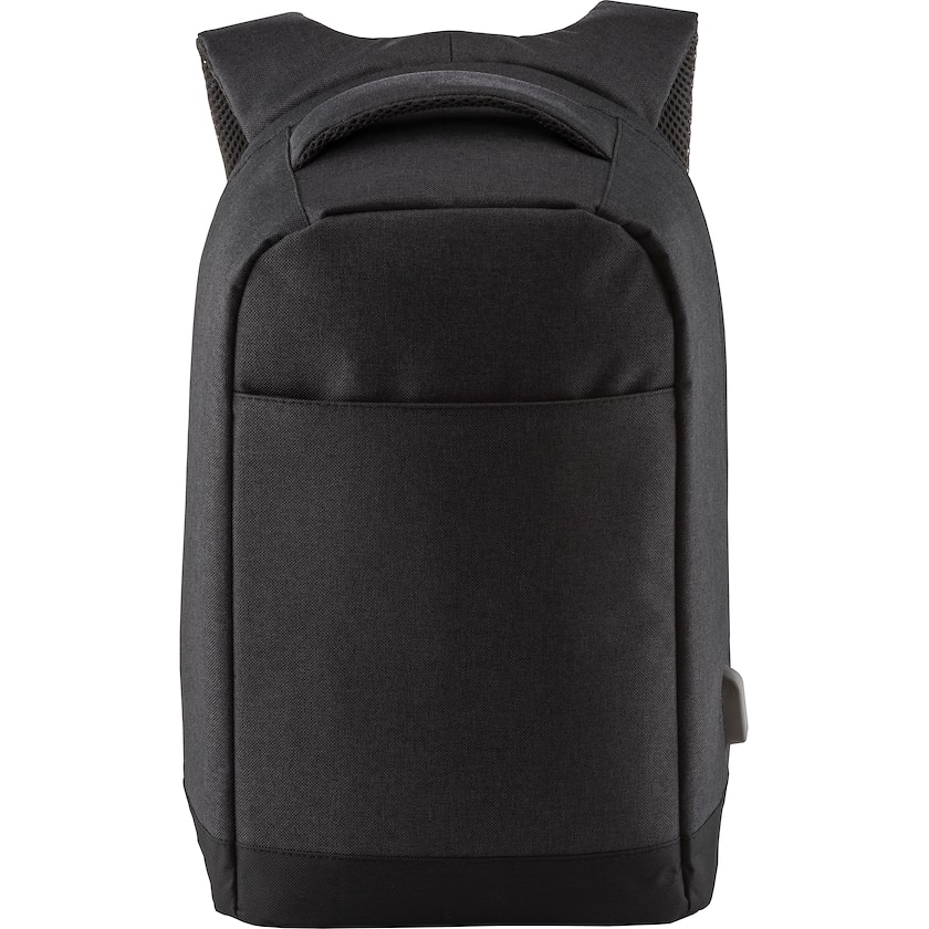 Preisgünstiger Computer-Rucksack mit erhöhtem Diebstahlschutz. Die Rückseite des Rucksacks und die Vordertasche sind verstärkt, um Diebe daran zu hindern, den Stoff aufzuschneiden. Darüber hinaus verfügt der Rucksack über versteckte Reißverschlüsse. Im Inneren befindet sich ein Fach, in dem ein 15 Zoll-Laptop Platz hineinpasst. Es ist nur ein 1-farbiger Druck möglich.