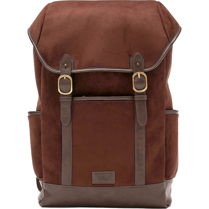 Exklusiver Computerrucksack im klassischen Design. Der Rucksack hat ein exklusives Wildlederimitat und schöne Messingdetails. Im Inneren befindet sich ein gepolstertes Fach für einen 17 Zoll Laptop.