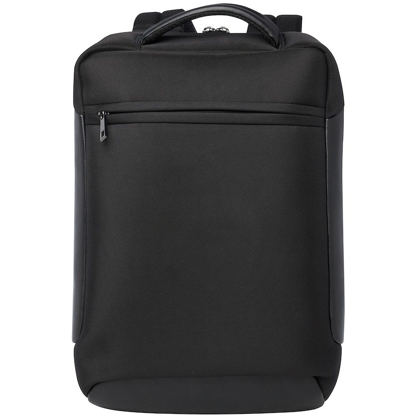 Eleganter und kompakter Computerrucksack. Hergestellt aus wasserabweisendem, umweltfreundlichem Stoff. Im Inneren befindet sich ein gepolstertes Fach für einen 15,6-Zoll-Laptop und ein Fach für ein Tablet. Der Rucksack verfügt über mehrere Taschen und Fächer.