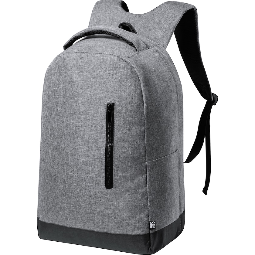 Umweltfreundlicher Computerrucksack aus rPET. Im Inneren befindet sich ein gepolstertes Fach für einen 15 Zoll Laptop und Platz für ein 12 Zoll Tablet. Schultergurte und Rückseite sind ergonomisch gestaltet. Der Rucksack hat zudem eine versteckte Diebstahlschutztasche. rPET wird aus recycelten PET-Flaschen hergestellt und ist eine gute Wahl für die Umwelt.