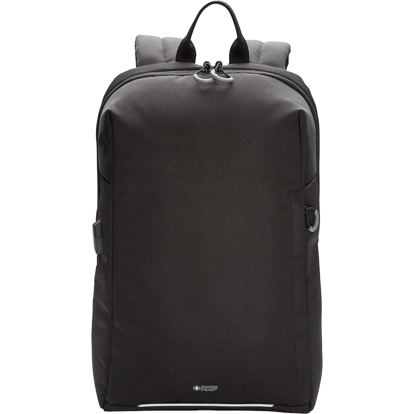 Eleganter Computerrucksack im praktischen Format. Der Rucksack besteht aus rPET, d.h. recycelten PET-Flaschen. Im Inneren befindet sich ein gepolstertes Fach für einen 15,6 Zoll Laptop. An der Rucksackvorderseite befindet sich ein Reflektor und seitlich ein RFID-geschütztes Fach.