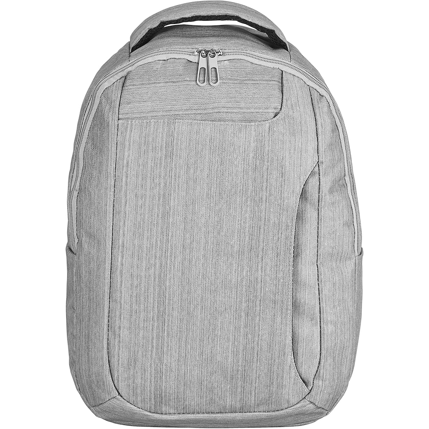 Computerrucksack aus schönem grauem Melange-Stoff. Im Inneren befindet sich ein gepolstertes Fach für einen 14-Zoll-Laptop. Neben dem Hauptfach befinden sich vorne zwei kleinere Aufbewahrungstaschen mit Reißverschluss. Rücken- und Schultergurte sind angenehm gepolstert.