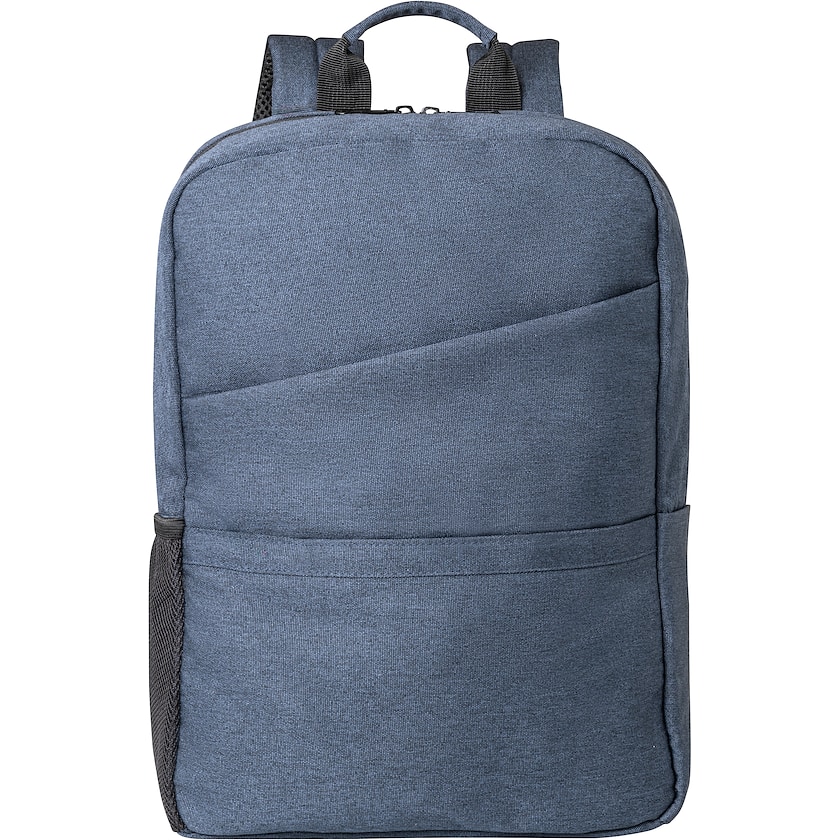 Umweltfreundlicher Computerrucksack von rPET. Indigo hat ein gepolstertes Fach für einen 15,6-Zoll-Laptop und ein gepolstertes Fach für ein 10,5-Zoll-Tablet. Auf der Vorderseite befinden sich zwei Reißverschlusstaschen für kleinere Gegenstände. An einer Seite befindet sich eine Netztasche. Rücken- und Schultergurte sind angenehm gepolstert.