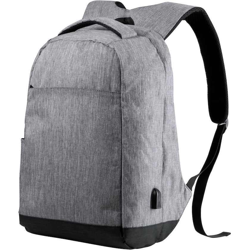 Rucksack mit Diebstahlsicherung. Innen befindet sich ein gepolstertes Fach, das Platz für die meisten 15 Zoll Laptops bietet, sowie ein gepolstertes Fach für 12 Zoll Tablets. Der Rücken und Schulterriemen sind gepolstert.