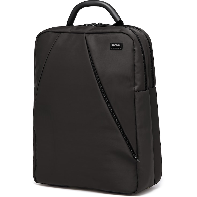Geräumiger, hochwertiger Computerrucksack von French Lexon. Im Inneren befindet sich ein gepolstertes Fach für einen 16-Zoll-Laptop. An der Oberseite befindet sich ein Tragegriff aus Aluminium. Der Rucksack verfügt über eine Reihe funktioneller Taschen und Stauräume.