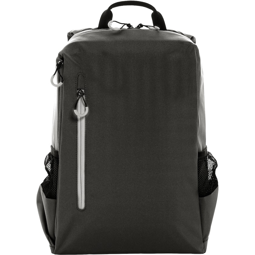 Umweltfreundlichen Laptoprucksack bedrucken. Stewart hat ein gepolstertes Fach für einen 15,6-Zoll-Laptop. Auf der Vorderseite befindet sich eine kleinere Tasche mit Reißverschluss und an den Seiten befinden sich Taschen für z.B. eine Wasserflasche. Der Stoff besteht zu 100% aus recyceltem Polyester.