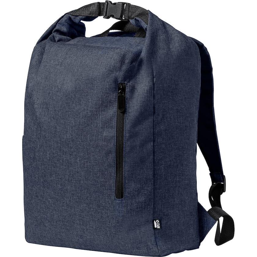 Wasserfester Rucksack mit Rolltop. Der Rucksack besteht aus umweltfreundlichem rPET. Rücken- und Schultergurte sind angenehm gepolstert.